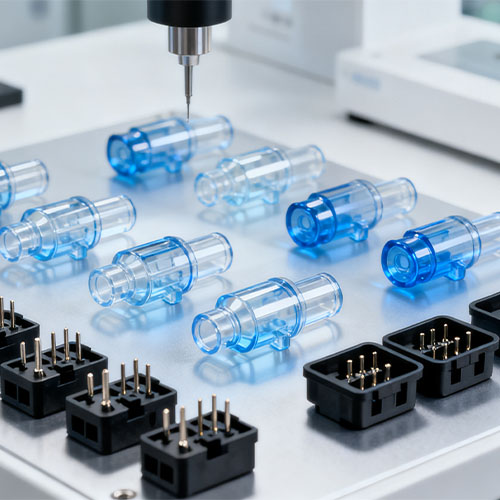 Lựa chọn vật liệu chính xác: Các vật liệu phổ biến bao gồm LCP, POM và PC để tránh tạp chất ảnh hưởng đến độ chính xác của khuôn;